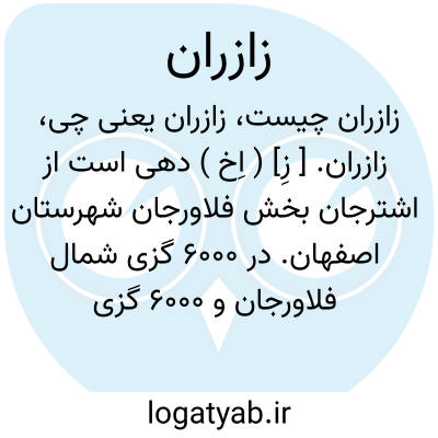 زازران. [ زِ] ( اِخ ) دهی است از اشترجان بخش فلاورجان شهرستان اصفهان. در 6000 گزی شمال فلاورجان و 6000 گزی شمال راه شهرکرد به اصفهان. منطقه ای است جلگه ای و معتدل، زبان اهالی فارسی است. آب از زاینده رود، محصول آن غلات، برنج و پنبه است. ( از فرهنگ جغرافیائی ایران ج 1 ).