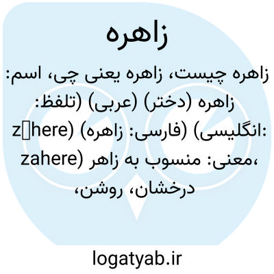 معنی: منسوب به زاهر، درخشان، روشن، تابان، ( مؤنث زاهر )، زاهر
