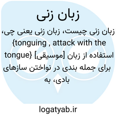 {tonguing , attack with the tongue} [موسیقی] استفاده از زبان برای جمله بندی در نواختن سازهای بادی، به نحوی که زبان در خیزِ اولیه جریان هوا را آزاد و برای اجرای نُت های پشت سرهم اما منقطع، جریان هوا را قطع می کند