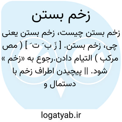 زخم بستن. [ زَ ب َ ت َ ] ( مص مرکب ) التیام دادن.رجوع به «زخم » شود. || پیچیدن اطراف زخم با دستمال و مانند آن. رجوع به زخم شود. || بسته شدن و بهم آمدن سر زخم. رجوع به «زخم » شود.