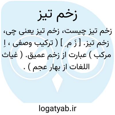 زخم تیز. [ زَ م ِ ] ( ترکیب وصفی، اِ مرکب ) عبارت از زخم عمیق. ( غیاث اللغات از بهار عجم ). کنایه از زخم فربه. ( بهار عجم ) ( آنندراج ). رجوع به زخم فربه شود.