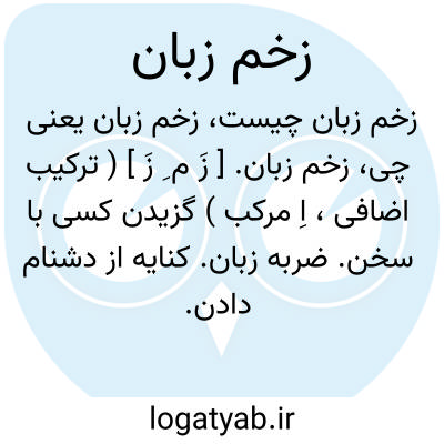 زخم زبان. [ زَ م ِ زَ ] ( ترکیب اضافی، اِ مرکب ) گزیدن کسی با سخن. ضربه زبان. کنایه از دشنام دادن. ملامت کردن. سخن تلخ گفتن درباره کسی. بدیهای او را برخش کشیدن. سرزنش کردن. گوشه و کنایه زدن. گواژه. بیغاره. فسوس. طعنه زدن. در زبان فارسی و عربی، چه در سخن نظم و نثر فصحا و چه در تداول عوام، امثال فراوان درباره زخم زبان ( طعن اللسان ) موجود است: