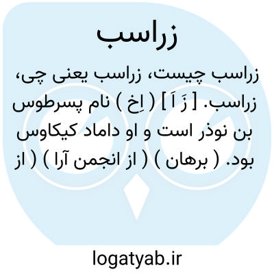 زراسب. [ زَ اَ ] ( اِخ ) نام پسرطوس بن نوذر است و او داماد کیکاوس بود. ( برهان ) ( از انجمن آرا ) ( از آنندراج ). نام پسر طوس. ( ناظم الاطباء ). نام پسر طوس بن نوذرشاه که خواهر ریو نیز به حباله او بوده و به دست فرود ابن سیاوش کشته گشت. ( شرفنامه منیری ) ( از جهانگیری ). نام پسر طوس نوذر که بر دست فرود کشته شد. ( فرهنگ رشیدی ). پسر طوس. ( فهرست ولف ص 467 ):