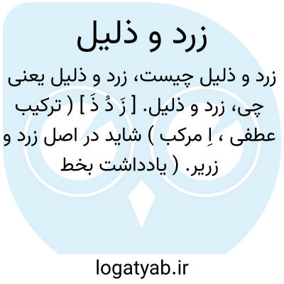 زرد و ذلیل. [ زَ دُ ذَ ] ( ترکیب عطفی، اِ مرکب ) شاید در اصل زرد و زریر. ( یادداشت بخط مرحوم دهخدا ). زردگونه. ناتوان. لاغر و نحیف. رنگ پریده: