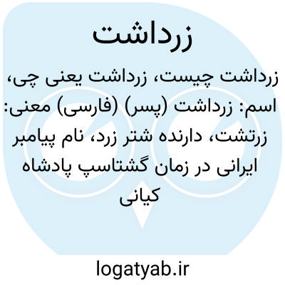 معنی: زرتشت، دارنده شتر زرد، نام پیامبر ایرانی در زمان گشتاسپ پادشاه کیانی