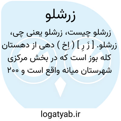 زرشلو. [ زَ رِ ] ( اِخ ) دهی از دهستان کله بوز است که در بخش مرکزی شهرستان میانه واقع است و 200 تن سکنه دارد. ( از فرهنگ جغرافیایی ایران ج 4 ).
