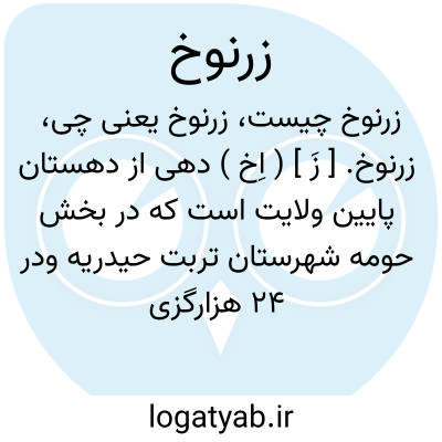 زرنوخ. [ زَ ] ( اِخ ) دهی از دهستان پایین ولایت است که در بخش حومه شهرستان تربت حیدریه ودر 24 هزارگزی جنوب باختری تربت حیدریه واقع است و 348 تن سکنه دارد. ( از فرهنگ جغرافیایی ایران ج 9 ).