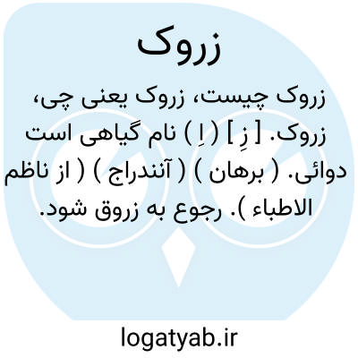 زروک. [ زِ ] ( اِ ) نام گیاهی است دوائی. ( برهان ) ( آنندراج ) ( از ناظم الاطباء ). رجوع به زروق شود.