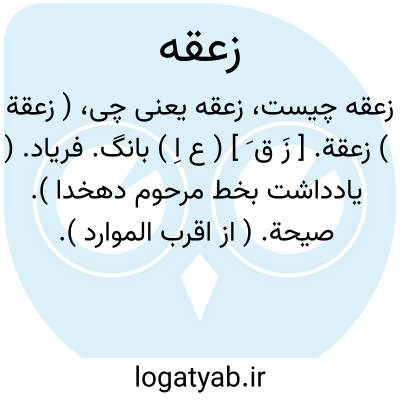 ( زعقة ) زعقة. [ زَ ق َ ] ( ع اِ ) بانگ. فریاد. ( یادداشت بخط مرحوم دهخدا ). صیحة. ( از اقرب الموارد ).
