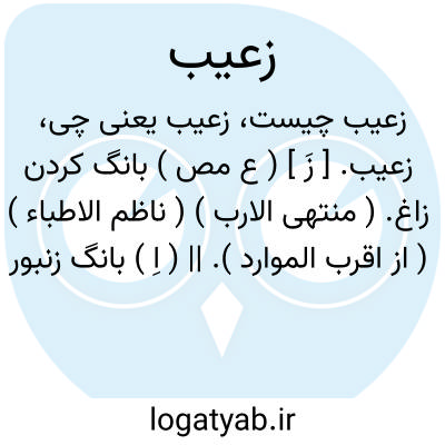 زعیب. [ زَ ] ( ع مص ) بانگ کردن زاغ. ( منتهی الارب ) ( ناظم الاطباء ) ( از اقرب الموارد ). || ( اِ ) بانگ زنبور عسل. ( منتهی الارب ) ( آنندراج ) ( ناظم الاطباء ) ( از اقرب الموارد ).