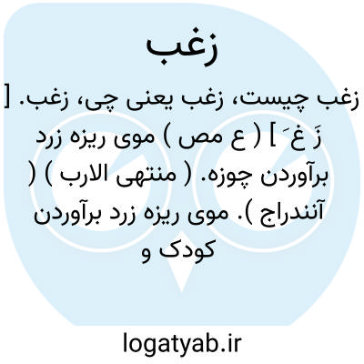 زغب. [ زَ غ َ ] ( ع مص ) موی ریزه زرد برآوردن چوزه. ( منتهی الارب ) ( آنندراج ). موی ریزه زرد برآوردن کودک و جوجه. ( از اقرب الموارد ). زغب الصبی زغباً ( از باب سمع )؛ روئید زغب آن کودک. و کذلک الشیخ و زغب الفرخ؛ زغب برآوردن آن چوزه. ( ناظم الاطباء ). || ( اِ ) موی ریزه زرد چوزه و جز آن. ( منتهی الارب ) ( آنندراج ) ( از اقرب الموارد ). پرز و موی ریزه زرد چوزه و جز آن. ( ناظم الاطباء ). موی مرغ بچگان را گویند که از خایه برآید، بر تن ایشان باشد. ( ذخیره خوارزمشاهی، یادداشت بخط مرحوم دهخدا ). || آنچه اول نمایان شود از موی و پر. || آنچه باقی بماند از موی بر سر پیر بعد افتادن و تنک گردیدن موی سر او. ( منتهی الارب ) ( آنندراج ) ( ناظم الاطباء ) ( از اقرب الموارد ). و به قولی موی ریزه های کوچک بر پر جوجه. ( از اقرب الموارد ). || اول و آغاز چیزی: اخذه بزغبه؛ یعنی گرفت اول و آغاز آن را. ( منتهی الارب ) ( ناظم الاطباء ) ( از اقرب الموارد ).