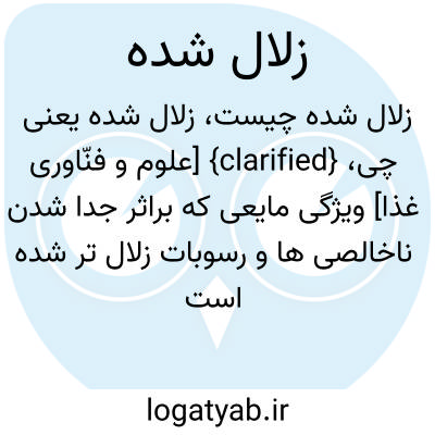 {clarified} [علوم و فنّاوری غذا] ویژگی مایعی که براثر جدا شدن ناخالصی ها و رسوبات زلال تر شده است