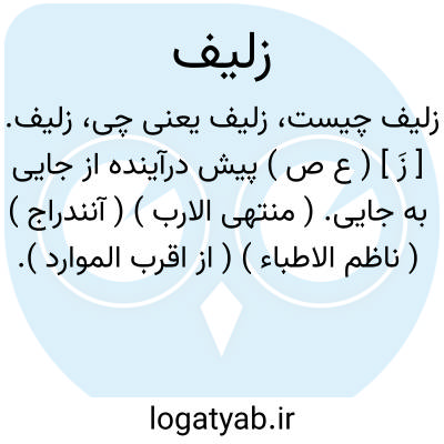زلیف. [ زَ ] ( ع ص ) پیش درآینده از جایی به جایی. ( منتهی الارب ) ( آنندراج ) ( ناظم الاطباء ) ( از اقرب الموارد ).