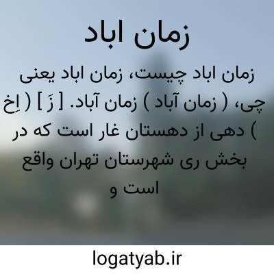 ( زمان آباد ) زمان آباد. [ زَ ] ( اِخ ) دهی از دهستان غار است که در بخش ری شهرستان تهران واقع است و 427 تن سکنه دارد. ( از فرهنگ جغرافیایی ایران ج 1 ).