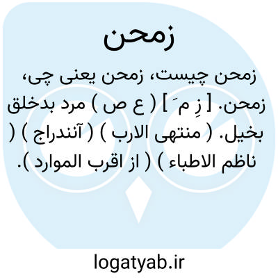 زمحن. [ زِ م َ ] ( ع ص ) مرد بدخلق بخیل. ( منتهی الارب ) ( آنندراج ) ( ناظم الاطباء ) ( از اقرب الموارد ).