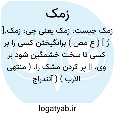 زمک. [ زَ م َ ] ( ع اِ ) خشم. ( منتهی الارب ) ( آنندراج ) ( ناظم الاطباء ) ( از اقرب الموارد ).