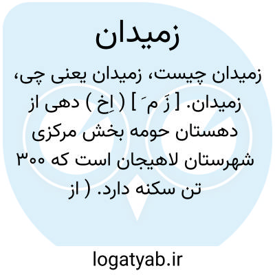 زمیدان. [ زَ م َ ] ( اِخ ) دهی از دهستان حومه بخش مرکزی شهرستان لاهیجان است که 300 تن سکنه دارد. ( از فرهنگ جغرافیایی ایران ج 2 ).