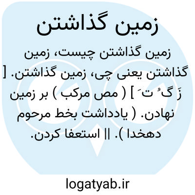 زمین گذاشتن. [ زَ گ ُ ت َ ] ( مص مرکب ) بر زمین نهادن. ( یادداشت بخط مرحوم دهخدا ). || استعفا کردن. ترک کردن. ( یادداشت ایضاً ).