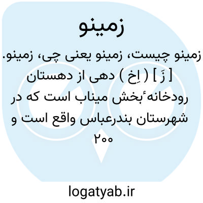 زمینو. [ زَ ] ( اِخ ) دهی از دهستان رودخانه ٔبخش میناب است که در شهرستان بندرعباس واقع است و 200 تن سکنه دارد. ( از فرهنگ جغرافیایی ایران ج 8 ).