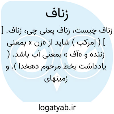 زناف. [ ] ( اِمرکب ) شاید از «زن » بمعنی زننده و «آف » بمعنی آب باشد. ( یادداشت بخط مرحوم دهخدا ). و زمینهای ترابنده که به زبان خوارزم زناف گویند و بخار پالیزه های تره چون کرنب و سیر و باقلی و مانند آن. ( ذخیره خوارزمشاهی، یادداشت ایضاً ). و هوا نیک صافی باشد که هیچ چیزغریب با وی آمیخته نباشد چون بخارها و دریاها و آبدانها و خندق ها و بیشه ها و زمینهای ترابنده که بزبان خوارزم زناف گویند. ( ذخیره خوارزمشاهی سطر ششم از باب سیم از گفتار نخستین از کتاب سوم از بخش نخستین اندرشناختن هوای نیک و هوای معتدل، یادداشت ایضاً ).