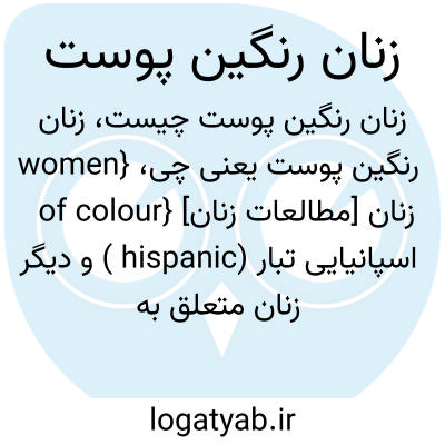 {women of colour} [مطالعات زنان] زنان اسپانیایی تبار (hispanic ) و دیگر زنان متعلق به اقلیت های قومی که در ایالات متحده زندگی می کنند؛ این اصطلاح عمدتاً در آثار فمینیستی با صبغۀ نژادپرستانه به کار می رود