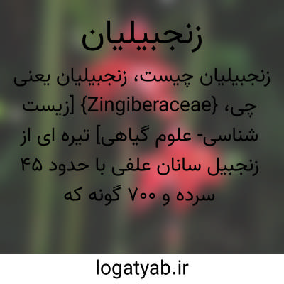{Zingiberaceae} [زیست شناسی- علوم گیاهی] تیره ای از زنجبیل سانان علفی با حدود 45 سرده و 700 گونه که در نواحی گرمسیری افریقا و آسیا و امریکا می رویند و ییشترین تنوع را در آسیای جنوب شرقی دارند؛ در قاعدۀ برگ های دوردیفۀ این گیاهان غلافی وجود دارد که از هم پوشانی آنها...