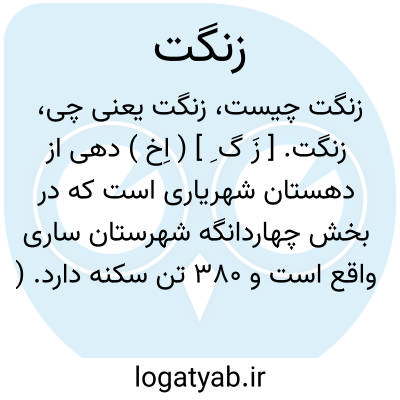 زنگت. [ زَ گ ِ ] ( اِخ ) دهی از دهستان شهریاری است که در بخش چهاردانگه شهرستان ساری واقع است و 380 تن سکنه دارد. ( از فرهنگ جغرافیایی ایران ج 3 ).
