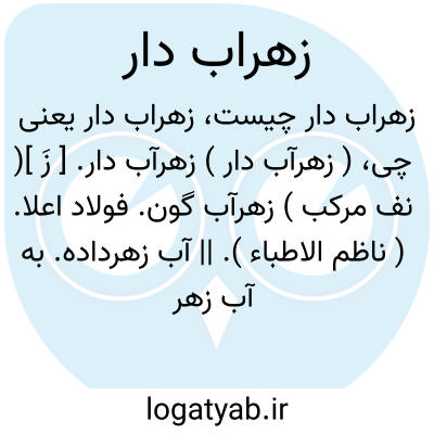 ( زهرآب دار ) زهرآب دار. [ زَ ]( نف مرکب ) زهرآب گون. فولاد اعلا. ( ناظم الاطباء ). || آب زهرداده. به آب زهر فروبرده: