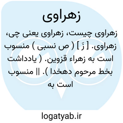 زهراوی. [ زَ ] ( ص نسبی ) منسوب است به زهراء قزوین. ( یادداشت بخط مرحوم دهخدا ). || منسوب است به زهراء محلی در جوار قرطبه. رجوع به زهرا و زهراء شود.