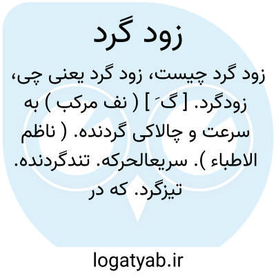 زودگرد. [ گ َ ] ( نف مرکب ) به سرعت و چالاکی گردنده. ( ناظم الاطباء ). سریعالحرکه. تندگردنده. تیزگرد. که در اندک زمانی گردد و حالتی دیگر بخود گیرد: