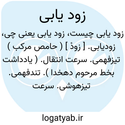 زودیابی. [ زودْ ] ( حامص مرکب ) تیزفهمی. سرعت انتقال. ( یادداشت بخط مرحوم دهخدا ). تندفهمی. تیزهوشی. سرعت انتقال. ( فرهنگ فارسی معین ).