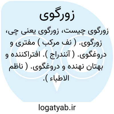 زورگوی. ( نف مرکب ) مفتری و دروغگوی. ( آنندراج ). افتراکننده و بهتان نهنده و دروغگوی. ( ناظم الاطباء ).