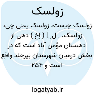 زولسک. [ ل ِ ] ( اِخ ) دهی از دهستان مؤمن آباد است که در بخش درمیان شهرستان بیرجند واقع است و 254 تن سکنه دارد. ( از فرهنگ جغرافیایی ایران ج 9 ).