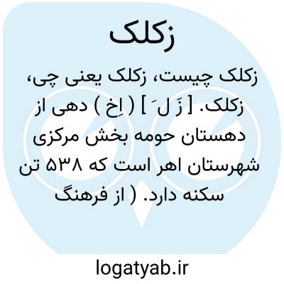 زکلک. [ زَ ل َ ] ( اِخ ) دهی از دهستان حومه بخش مرکزی شهرستان اهر است که 538 تن سکنه دارد. ( از فرهنگ جغرافیایی ایران ج 4 ).