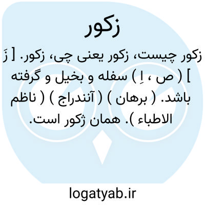 زکور. [ زَ ] ( ص، اِ ) سفله و بخیل و گرفته باشد. ( برهان ) ( آنندراج ) ( ناظم الاطباء ). همان ژکور است. ( از شرفنامه منیری ). زفت بود و بخیل و دون. ( لغتنامه اسدی، یادداشت بخط مرحوم دهخدا ):