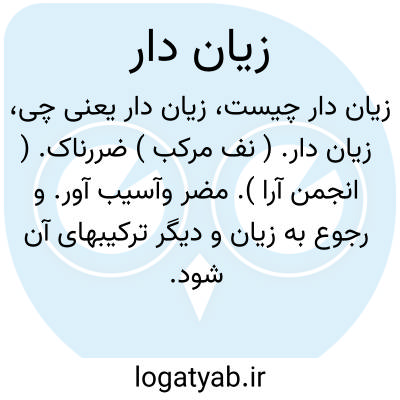 زیان دار. ( نف مرکب ) ضررناک. ( انجمن آرا ). مضر وآسیب آور. و رجوع به زیان و دیگر ترکیبهای آن شود.
