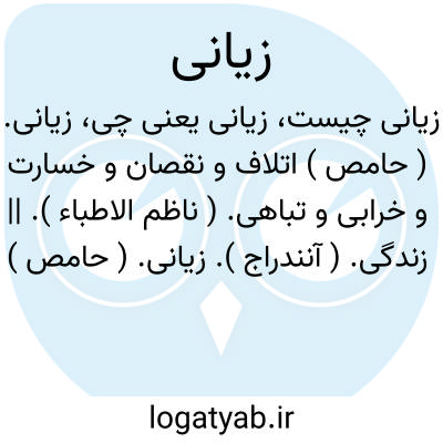 زیانی. ( حامص ) اتلاف و نقصان و خسارت و خرابی و تباهی. ( ناظم الاطباء ). || زندگی. ( آنندراج ).