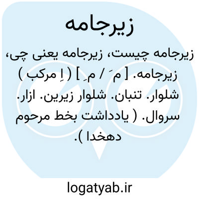 زیرجامه. [ م َ / م ِ ] ( اِ مرکب ) شلوار. تنبان. شلوار زیرین. ازار. سروال. ( یادداشت بخط مرحوم دهخدا ). ازار. ( آنندراج ). زیرشلواری. شلواری کوتاه یا بلند که در زیر شلوار معمولی پوشند. ( فرهنگ عامیانه جمال زاده ). ازار و پای جامه. ( غیاث ). جامه ای که از کمر تا قدم رامی پوشاند. ( ناظم الاطباء ). جامه نازکی که زیر شلوارپوشند. زیرشلواری. ( فرهنگ فارسی معین ):