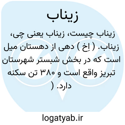 زیناب. ( اِخ ) دهی از دهستان میل است که در بخش شبستر شهرستان تبریز واقع است و 380 تن سکنه دارد. ( از فرهنگ جغرافیایی ایران ج 4 ).