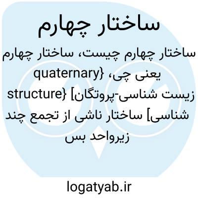 {quaternary structure} [زیست شناسی-پروتگان شناسی] ساختار ناشی از تجمع چند زیرواحد بس پپتیدی به شکل یک پروتئین یا یک ساختار به هم پیوسته که ازطریق اتصالات عرضی با رشته های دِنا ایجاد شده است