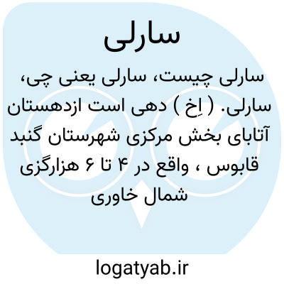 سارلی. ( اِخ ) دهی است ازدهستان آتابای بخش مرکزی شهرستان گنبد قابوس، واقع در 4 تا 6 هزارگزی شمال خاوری گنبد قابوس. دشت، هوای آن معتدل، آب آن از رودخانه گرگان، محصول آن غلات، حبوبات، صیفی و لبنیات است، 900 تن سکنه دارد که به زراعت و گله داری اشتغال دارند. قالیچه بافی از صنایع دستی زنان آن است. ( از فرهنگ جغرافیائی ایران ج 3 ).
