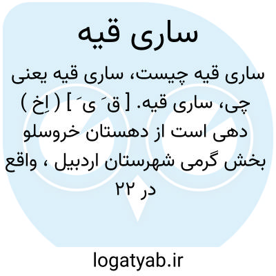 ساری قیه. [ ق َ ی َ ] ( اِخ ) دهی است از دهستان نیر بخش مرکزی شهرستان اردبیل، واقع در 40هزارگزی جنوب باختری اردبیل، و یک هزارگزی راه شوسه تبریز به اردبیل. کوهستانی، هوای آن معتدل، آب آن از چشمه و رودخانه بالخلو، و محصول آن غلات و حبوبات، و صادرات آن کره گوسفند و چرم و روده است، 898 تن سکنه دارد که به زراعت و گله داری اشتغال دارند. راه آن ارابه رو است. ( از فرهنگ جغرافیائی ایران ج 4 ).