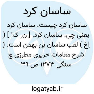 ساسان کرد. [ ن ِ ک ُ ] ( اِخ ) لقب ساسان بن بهمن است. ( شرح مقامات حریری مطرزی چ سنگی 1273 ص 39 بنقل دکتر معین در حاشیه برهان ). رجوع به ساسان بن بهمن شود.