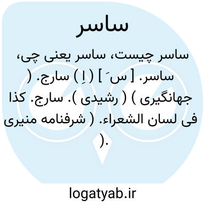 ساسر. [ س َ ] ( اِ ) سارج. ( جهانگیری ) ( رشیدی ). سارج. کذا فی لسان الشعراء. ( شرفنامه منیری ). سارج است که سارباشد. ( برهان ) ( آنندراج ). سار. ( استینگاس ) ( ناظم الاطباء ). رجوع به سار شود.