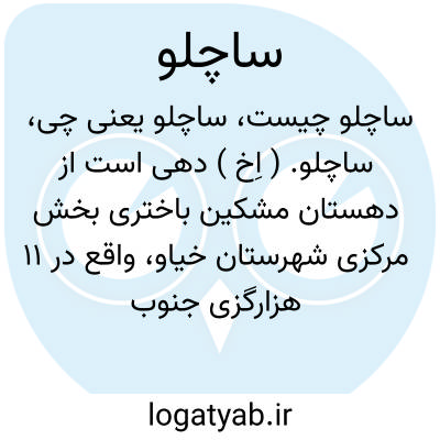 ساچلو. ( اِخ ) دهی است از دهستان مشکین باختری بخش مرکزی شهرستان خیاو، واقع در 11 هزارگزی جنوب باختری خیاو، و 3 هزارگزی راه شوسه خیاو به اهر. کوهستانی است و هوای معتدلی دارد و از آب رودگرگر مشروب می شود. محصول آن غلات و حبوبات است. 70 تن سکنه دارد که به زراعت و گله داری اشتغال دارند. راه آن ارابه رواست. ( از فرهنگ جغرافیائی ایران ج 4 ).