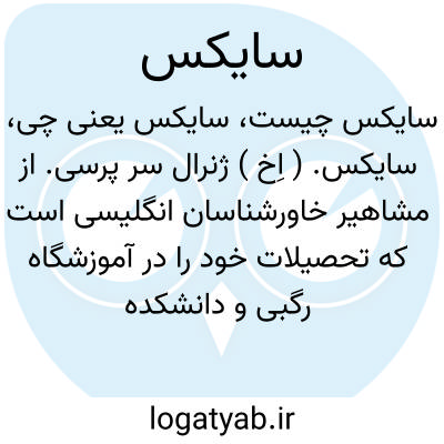 سایکس. ( اِخ ) ژنرال سر پرسی. از مشاهیر خاورشناسان انگلیسی است که تحصیلات خود را در آموزشگاه رگبی و دانشکده افسری ( ساندهرست ) بپایان رسانیده و در هر دو آموزشگاه بدریافت جایزه های پهلوانی نایل آمده است. در سال 1892م. بسمت افسر هنگ دوم نیزه دار ( از هنگ های مشهور انگلیسی ) منصوب شد. مسافرت های خود را در آسیای مرکزی، ایران، بلوچستان آغاز کرد. در سال 1894 کنسولگری انگلیسی را در کرمان تأسیس نمود و دو سال بعد از آن در کمیسیون مرزی ایران و بلوچ مأموریت یافت و در همان سال مسافرتی در حوزه رود کارون نمود و در 1897 مأمور پذیرائی و مصاحبت والاحضرت ناصرالملک مرحوم گردید که آن موقع بعنوان نماینده مخصوص به لندن عزیمت مینمود. در 1899 کنسولگری انگلیس را در سیستان تأسیس نمود. و در 1901 بعنوان فرمانده هنگ «مونتگامری شایر تیومانری » در جنگ بوئر شرکت کردو در همین جنگ مجروح گشته بپاس فداکاریهایی که از خود در آن جنگها نشان داده بود به اخذ مدال و نشانهای افتخار نایل آمده... در 1902 بدریافت نشان علمی طلا از انجمن جغرافیایی پادشاهی مفتخر گردید. از 1905 تا1913 سرکنسولگر انگلیس در خراسان بود. در آغاز جنگ بین الملل اول فرماندار نظامی «سوت هامپتون » شد و سپس جزء لشکر لاهور در فرانسه مأموریت یافت. در 1915 به سرکنسولگری ترکستان چین معین شد. در 1916 بپاس خدماتی که انجام داده بود بدریافت نشان نایل گردید و دراحکام نظامی از وی قدردانی شد و پس از پایان جنگ به انگلستان باز گشته و منشی افتخاری انجمن آسیای مرکزی گردید. تألیفات مهم این دانشمند عبارتند از: 1 - افتخار عالم شیعه. 2 - ده هزار میل در ایران. 3 - تاریخ افغانستان. 4 - تاریخ اکتشافات عالم، برای تألیف اخیر از انجمن علمی امپراطوری بدریافت نشان طلا مفتخر شد. 5 - در صحراها و واحه های آسیای مرکزی، این کتاب با کمک بالوالا سایکس نوشته شده است. 6 - تاریخ ایران. رجوع به مقدمه تاریخ ایران تألیف سایکس شود.