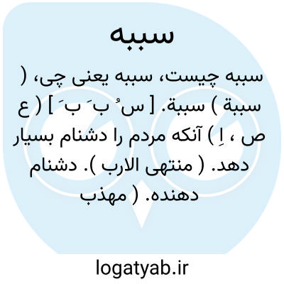 ( سببة ) سببة. [ س ُ ب َ ب َ ] ( ع ص، اِ ) آنکه مردم را دشنام بسیار دهد. ( منتهی الارب ). دشنام دهنده. ( مهذب الاسماء ) ( اقرب الموارد ).