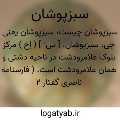 سبزپوشان. [ س َ ] ( اِخ ) مرکز بلوک علامرودشت در ناحیه دشتی و همان علامرودشت است. ( فارسنامه ناصری گفتار 2 ص 227 ). از بنادر خلیج فارس.
