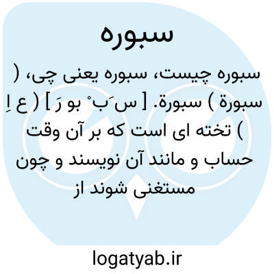 ( سبورة ) سبورة. [ س َب ْ بو رَ ] ( ع اِ ) تخته ای است که بر آن وقت حساب و مانند آن نویسند و چون مستغنی شوند از آن محو سازند آن را. ( منتهی الارب )( ناظم الاطباء ) ( اقرب الموارد ). تخته سیاه مدارس.