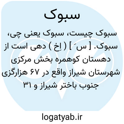 سبوک. [ س َ ] ( اِخ ) دهی است از دهستان کوهمره بخش مرکزی شهرستان شیراز واقع در 67 هزارگزی جنوب باختر شیراز و 31 هزارگزی راه فرعی شیراز به سیاخ. ناحیه ای است کوهستانی و معتدل و دارای 275 تن سکنه میباشد. آب آنجا از چشمه تأمین میشود. محصول آن غلات، لبنیات و برنج. اهالی آنجا بکشاورزی و گله داری گذران میکنند. راه آن مالرو است. ( از فرهنگ جغرافیایی ایران ج 7 ).